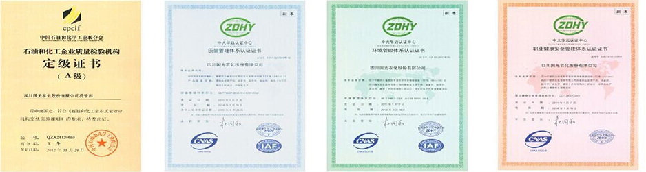 國光視產(chǎn)品為企業(yè)生命。公司通過了ISO19001質(zhì)量管理體系認證,對產(chǎn)品生產(chǎn)流程進行嚴格的質(zhì)量管理。國光質(zhì)管部是國家石油和化學工業(yè)協(xié)會認定的“A級質(zhì)檢機構”,配備了Agilent1100、1200A、1200B、1200C液相色譜儀、Agilent 6820氣相色譜儀、原子吸收分光光度計、原子熒光光譜儀等現(xiàn)代化的檢驗檢測設備。同時強化企業(yè)標準化建設和計量管理以確保產(chǎn)品質(zhì)量。 |