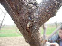 (3)春季管理:枝蔓發(fā)病,剪除枝條;主桿發(fā)病,刮除病斑,涂抹殺細(xì)菌藥劑。若發(fā)病過于嚴(yán)重,將挖除植株,當(dāng)場(chǎng)燒毀。