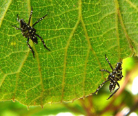 若蟲或成蟲用嘴刺吸汁液,使葉片出現(xiàn)淡白色斑點(diǎn),危害嚴(yán)重時(shí)斑點(diǎn)呈斑塊狀,或刺傷表皮,使枝條葉片枯萎。