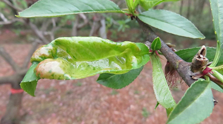 桃樹縮葉病是春季常見的一種病害,桃樹染病引起葉片腫脹皺縮,嚴(yán)重時(shí)病葉干枯脫落,對(duì)產(chǎn)量和品質(zhì)有較大的影響,還會(huì)影響花芽形成和來(lái)年的產(chǎn)量。