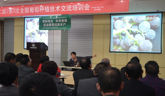 2014年12月1日—5日,由中國(guó)農(nóng)學(xué)會(huì)葡萄分會(huì)、中國(guó)果品流通協(xié)會(huì)葡萄分會(huì)主辦,中國(guó)農(nóng)藥發(fā)展與應(yīng)用協(xié)會(huì)植物生長(zhǎng)調(diào)節(jié)劑專業(yè)委員會(huì)、國(guó)光承辦的2014年(第二屆)第三次全國(guó)葡萄種植技術(shù)交流培訓(xùn)會(huì)在國(guó)光召開,來自安徽、湖北、四川、山西、江蘇等地的200余名葡萄種植戶參加了會(huì)議。