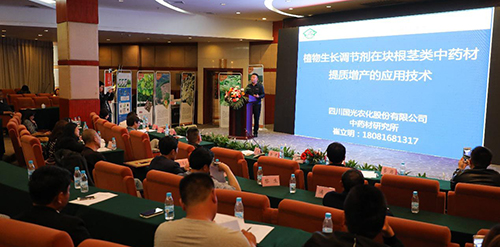 在專家座談中,四川省中藥行業(yè)協會會長石才金;四川大學華西藥學院教授張浩;四川省中醫(yī)藥科學院教授舒光明;四川農業(yè)大學教授田孟良;四川省農科院經作所研究員張超;四川省農業(yè)廳高級農藝師李濤等領導、專家作了專題演講,國光作物調控技術研究院中藥材所負責人就植物生長調節(jié)劑在塊根莖類中藥材提質增產的應用技術進行了分享。