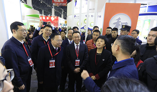 開幕式結(jié)束后,領(lǐng)導(dǎo)們共同步入展館蒞臨參觀,在走到國光展位時(shí),領(lǐng)導(dǎo)們與國光副董事長、總經(jīng)理顏亞奇進(jìn)行了親切交流,肯定了國光在植物生長調(diào)節(jié)劑推廣上所開展的工作,并聆聽了國光的企業(yè)文化介紹。