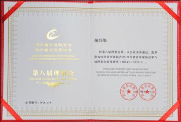 2014年1月,經第八屆理事會第一次會議表決通過,公司董事長顏昌緒先生選舉為四川省企業(yè)聯(lián)合會/四川省企業(yè)家協(xié)會第八屆理事會常務理事。