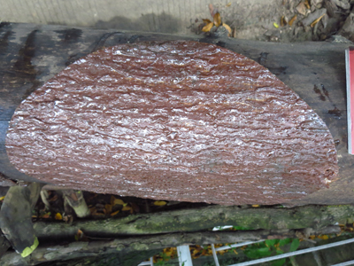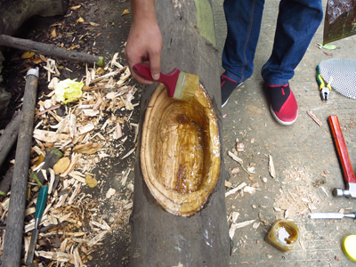 2、ACQ木材防腐劑熟桐油分別涂刷挖好的樹洞,一種防腐材料涂抹一半的樹洞(圖2);