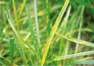 【發(fā)病特點(diǎn)】:銹病分布廣、危害重,所有禾本草都能被侵染發(fā)病,尤其是冷季型草中的多年生黑麥草、高羊茅和草地早熟禾等受害最重,狗牙根和結(jié)縷草等也可受害。禾草感病后葉綠素被破壞,光合作用降低,呼吸作用失調(diào),蒸騰作用增強(qiáng),大量失水,葉片變黃枯死,草坪景觀受很大影響。