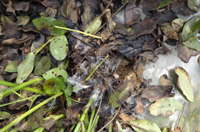 癥狀:病害多在花生成株期發(fā)生,主要為害莖部、果柄及莢果。發(fā)病初期病部變褐軟腐,其上出現(xiàn)波紋狀病斑。病斑表面長出一層白色絹狀絲菌絲體,在合適條件下菌絲蔓延至植株中下部莖桿,并在分枝間、植株間蔓延。土壤潮濕隱蔽時(shí),病株周圍土表植物殘?bào)w和有機(jī)質(zhì)上也布滿一層白色菌絲體。在菌絲體中形成很多球狀菌核。受害莖基部組織腐爛,皮層脫落,剩下纖維狀組織。病株葉片變黃,邊緣焦枯,最后枯萎而死,受侵害果柄和莢果長出很多白色菌絲,呈濕腐狀腐爛。