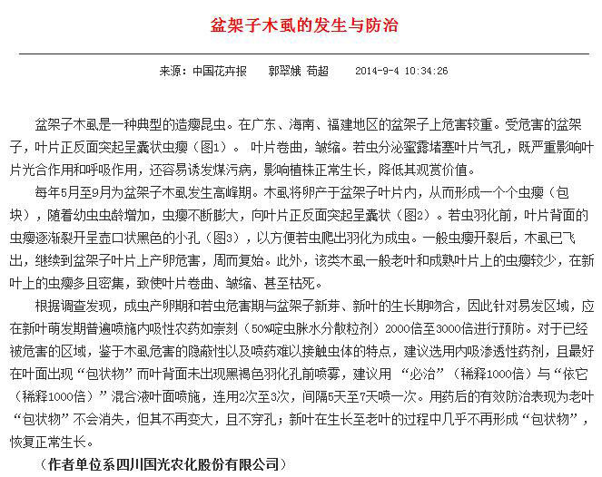 2、根據(jù)調(diào)查發(fā)現(xiàn),成蟲(chóng)產(chǎn)卵期和若蟲(chóng)危害期與盆架子新芽、新葉的生長(zhǎng)期吻合,因此針對(duì)易發(fā)區(qū)域,應(yīng)建議在新葉萌發(fā)期普遍噴施內(nèi)吸性的農(nóng)藥如崇刻(50%啶蟲(chóng)脒水分散粒劑)2000-3000倍進(jìn)行預(yù)防。若已經(jīng)被危害的區(qū)域,鑒于木虱危害的隱蔽性以及噴藥難以接觸蟲(chóng)體的特點(diǎn),建議選用內(nèi)吸滲透性藥劑,且最好在葉面出現(xiàn)“包狀物”而葉背面未出現(xiàn)黑褐色羽化孔前噴霧,建議用 “必治”(稀釋1000倍)與“依它(稀釋1000倍)”混合液葉面噴施,連用2-3次,間隔5-7天噴一次; 此方案用藥前后的對(duì)比如下(見(jiàn)圖4、圖5)。